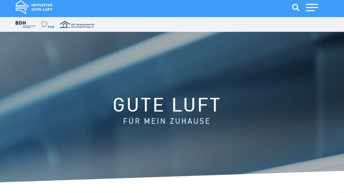Gute Luft ist ein Angebot von BDH – Bundesverband der Deutschen Heizungsindustrie e. V., FGK – Fachverband Gebäude-Klima e. V. und VfW -Bundesverband für Wohnungslüftung e. V.